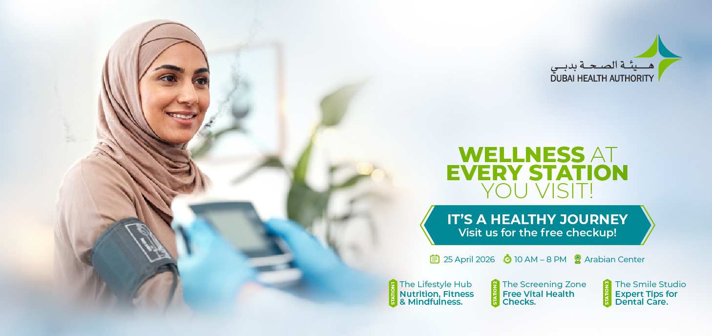 Your health deserves more than just a routine check. Arabian Center, in partnership with the Dubai Health Authority, brings you a free, all-in-one wellness experience designed to help you look after what matters most — your well-being.